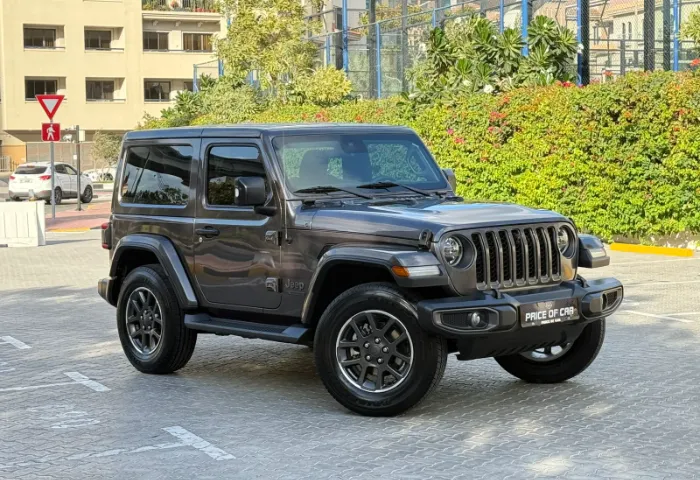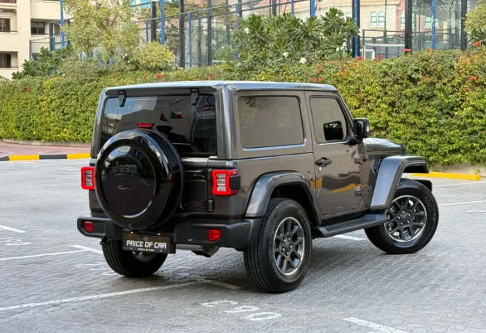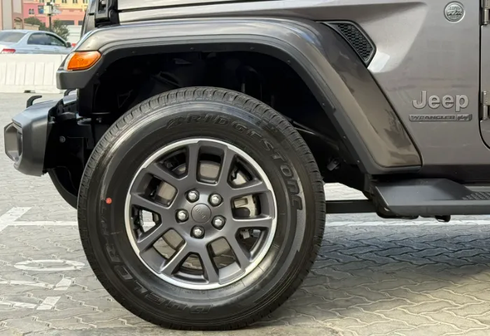 Exterior: - 80th Anniversary exterior badging. - Body-colored fender flares. - 18-inch aluminum wheels with all-terrain tires. - LED taillights, HID headlights, fog lights, and tow hook. - Removable doors, roof panels, and tailgate for open-air driving.