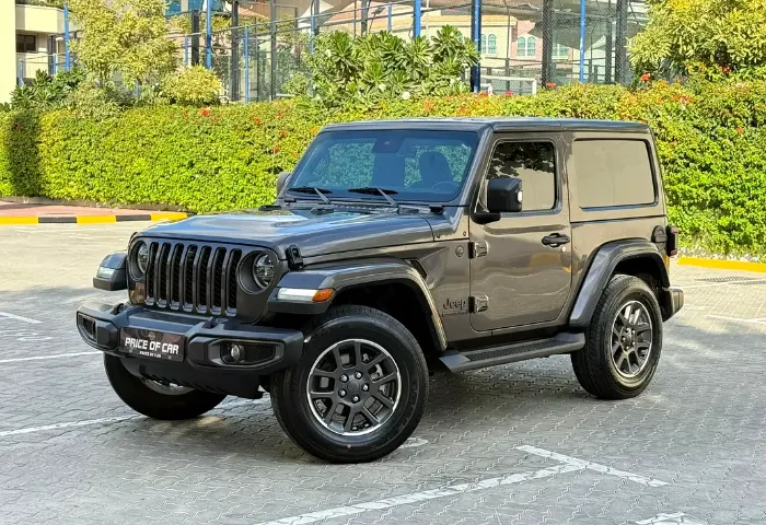 Exterior: - 80th Anniversary exterior badging. - Body-colored fender flares. - 18-inch aluminum wheels with all-terrain tires. - LED taillights, HID headlights, fog lights, and tow hook. - Removable doors, roof panels, and tailgate for open-air driving.